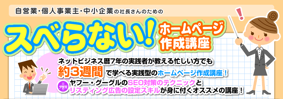 自営業・個人事業主・中小企業の社長さんのためのスベらないホームページ作成講座